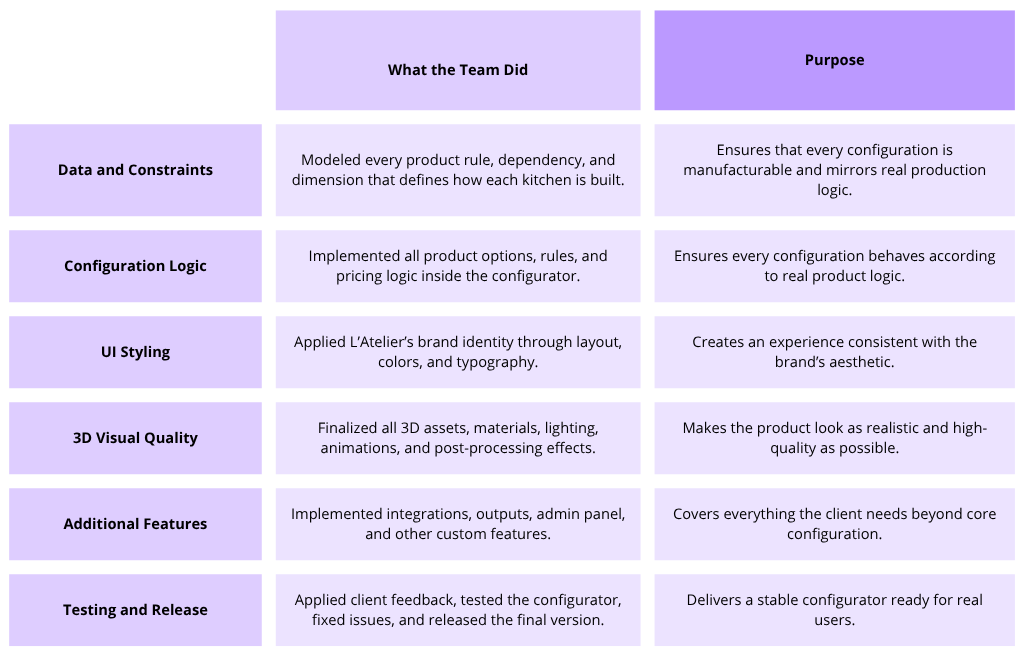 L’Atelier worked with a team that understood how real products are built and how that translates into configuration logic, visuals, and data.